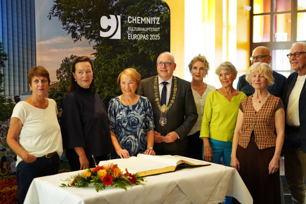 Das Projekt „Begegnungen / Encounters“ des Buntmacher*innen e.V. Chemnitz widmete sich 2025 mit unterschiedlichen Formaten (Gespräch, Begegnung, Film, Lesung, Aktion, Workshop und Recherchen) einer zeitgemäßen Belebung der Erinnerungskultur. Zentraler Dreh und Angelpunkt des Projektes war ein Begegnungstreffen von Angehörigen einst vertriebener jüdischer Familien, die sich in Chemnitz trafen und mit Schüler*innen und der Stadtgesellschaft in den interessierten Austausch kamen. Angebahnt wurde das Encounters-Format durch einen Recherche-Workshop mit Schüler*innen aus Chemnitz und Nordmazedonien, durch die Präsentation eines Dokumentarfilms zu zeitgenössischen Dimensionen rechten Terrors, sowie einem Gespräch zu einer vergessenen Chemnitzer Theatergeschichte und der Bedeutung von Kunst und Kultur als Säulen des demokratischen Miteinanders.